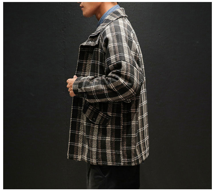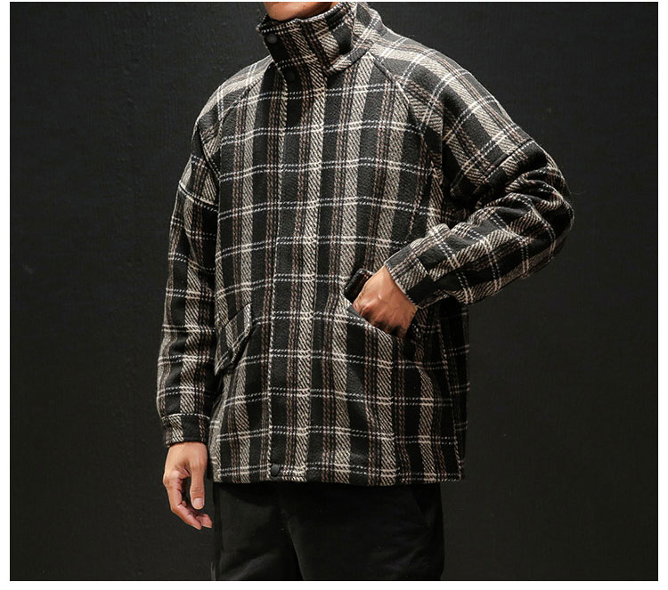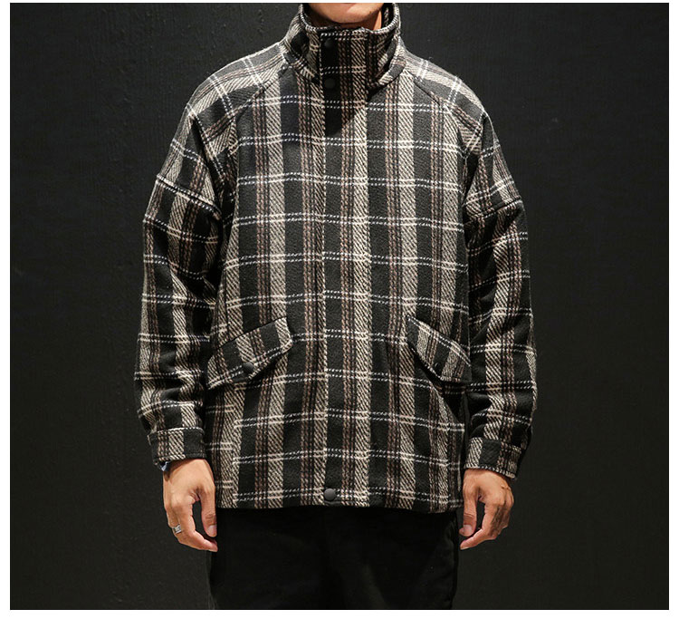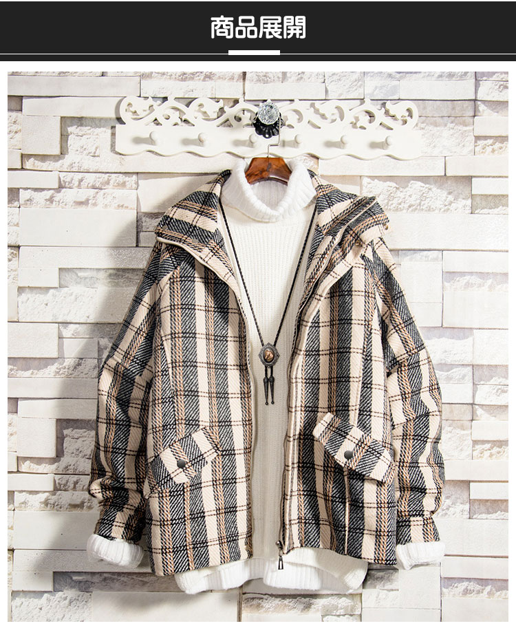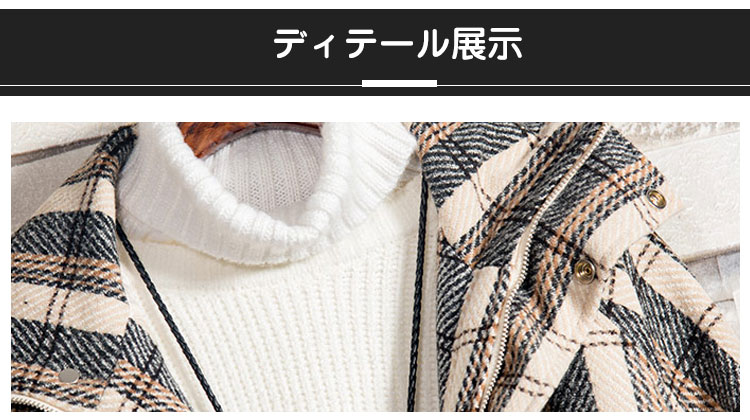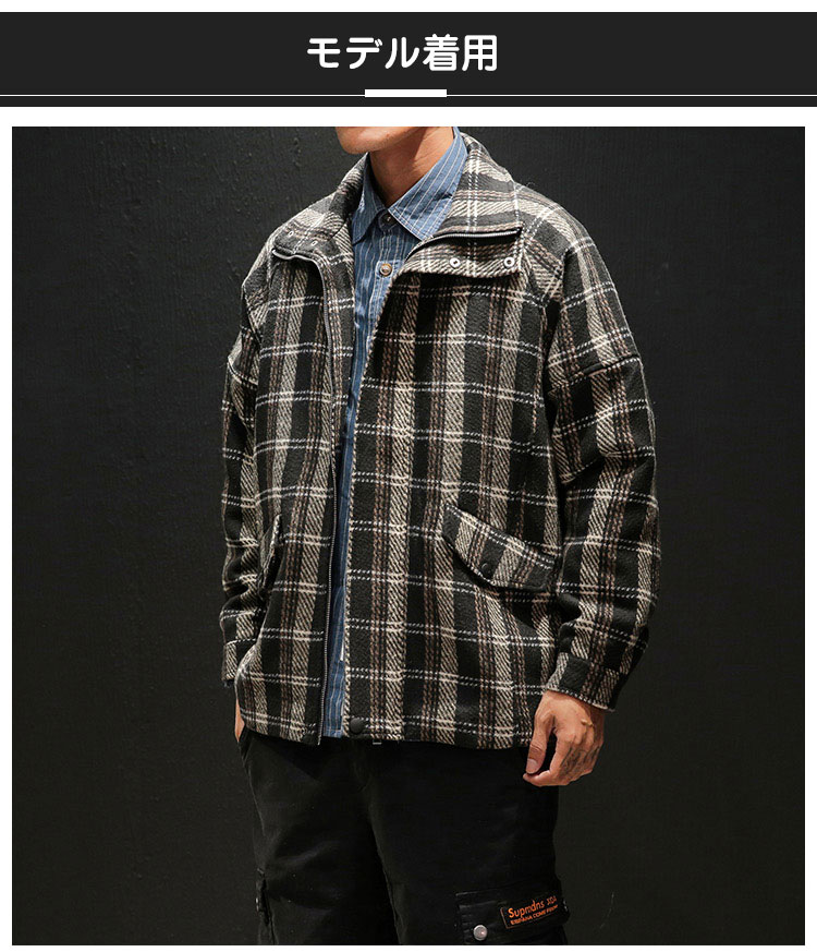 メンズチェック柄ジャケット 2点目から1980円オフ スタンドカラー トレンド スタイリッシュ ラシャ 通勤通学